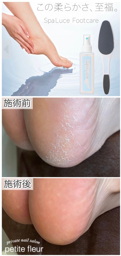 消毒→角質→ゴマージュパック&マッサージ→フットバス→保湿パック